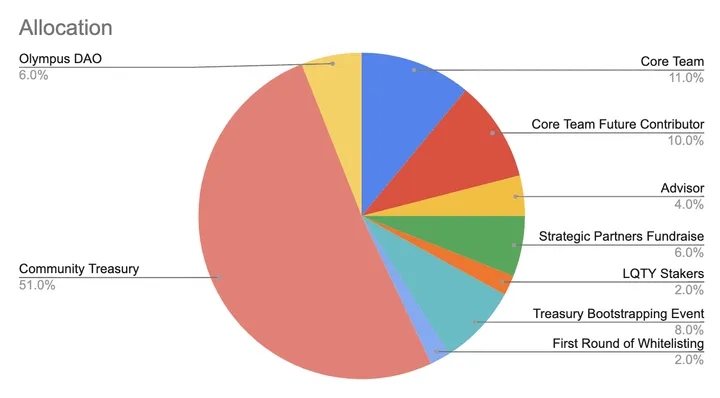 - The Community Treasury (47% out of the 51% total supply) will be used to bolster growth, notably through yield farming programs