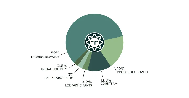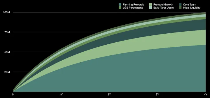 - 59% (59M TAROT) of the total supply is reserved for Farming Rewards