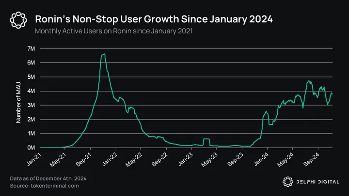 Ronin continues to lead in player engagement, leveraging Axie Infinity’s legacy success and demonstrating its ability to rally ecosystem-wide support behind standout titles like Pixels – which remains the highest DAU game in Web3 (currently around 400k). After Pixel’s success in early 2024, Ronin has begun to slowly open up its ecosystem, signing over ten games in the last 3 months. However, none have come close to Pixel’s explosive launch, raising questions on how thin Ronin can spread its player liquidity.
