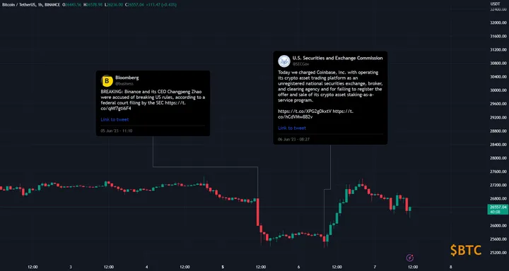 In spectacular fashion, the SEC has filed lawsuits against the two largest cryptocurrency exchanges, Binance and Coinbase, on consecutive days. Coinbase is accused of listing tokens that are unregistered securities and offering its staking program. Meanwhile, Binance (along with CZ) faces various charges like commingling customer funds and defrauding investors.