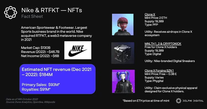 - The deliberately-planned gradual reveal generated a lot of hype about its contents and plenty of secondary sales. At a 10% creator fee, Nike — RTFKT fetched over $30M in royalties from MNLTH alone!