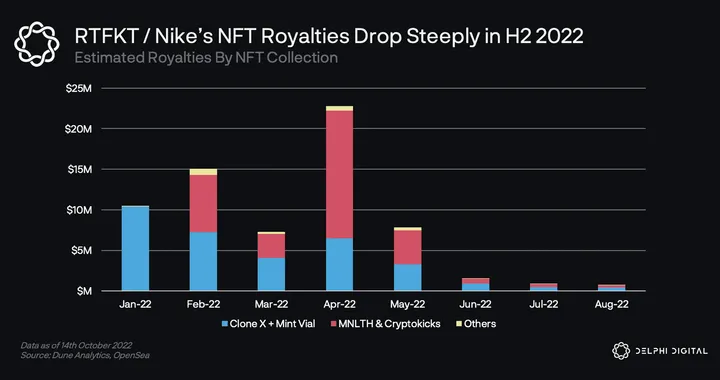 - Although Nike — RTFKT did not generate any primary sales revenue through these airdrops, they were able to rake in a massive amount of royalties from secondary sales, particularly with MNLTH.