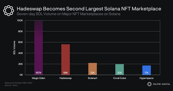 Hadeswap is an AMM-based NFT marketplace that launched on Sept. 26 on Solana. Since then, the platform has experienced outsized growth to become the second-largest NFT marketplace on Solana.
