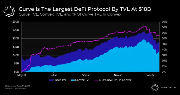 Through their symbiotic relationship, Convex has helped propel Curve to the largest DeFi protocol by total value locked, amassing over $18B in deposits.