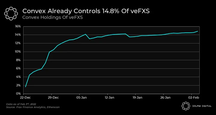 Convex’s future is tied to its ability to grow beyond Curve. And this has already begun with the creation of cvxFXS — a liquid staking derivative for Frax which already controls 14.8% of all veFXS.