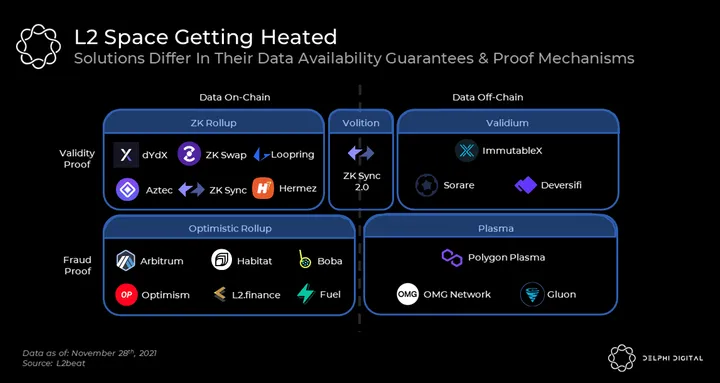 Unlike fraud-proofs on Optimistic rollups, validity proofs from a ZK-rollup also enable a new scalability solution known as volition. Although the full effects of volition remain to be seen, they seem very promising as it gives users the freedom to decide whether to post data on-chain or off-chain. This allows users to decide on their security level on a per transaction basis. Both zkSync and Starkware have volition implementations launching in the next weeks/months.