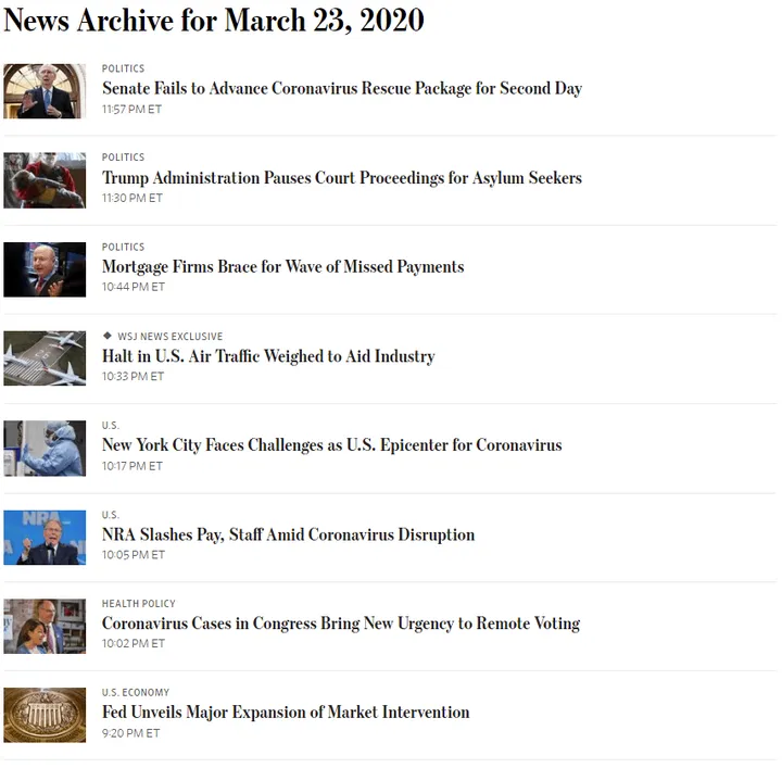 The Wall Street Journals’ News Archive for March 23, 2020
