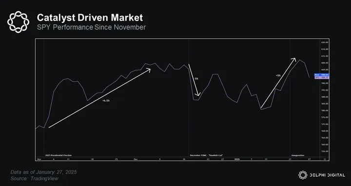 After the SPY’s 6.5% rally from November – December, the FOMC’s “hawkish cut” sent equity markets spiraling, retracing much of those gains.