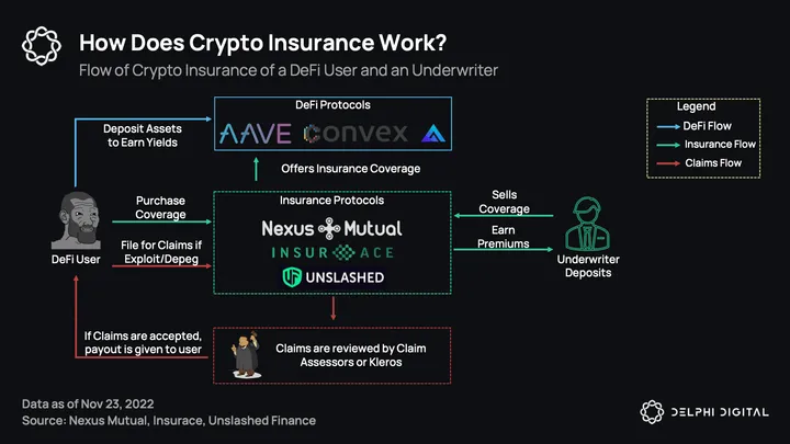 - There are two main participants for crypto insurance, the coverage purchaser, such as a DeFi user, and the coverage issuer, such as the insurance protocol.