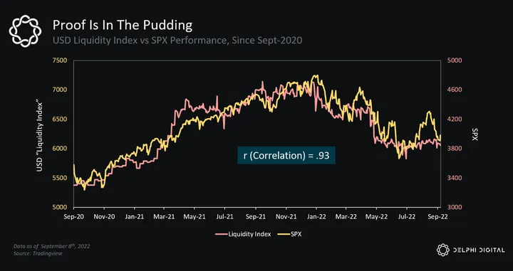 - One topic that has garnered much discussion is the idea behind a USD Liquidity Index. The thesis is that the quantity of money (dollar liquidity) holds a greater influence over risk appetite compared to the price of money. Simply put, when liquidity is bountiful, so is risk tolerance. When liquidity dries up, so does risk.