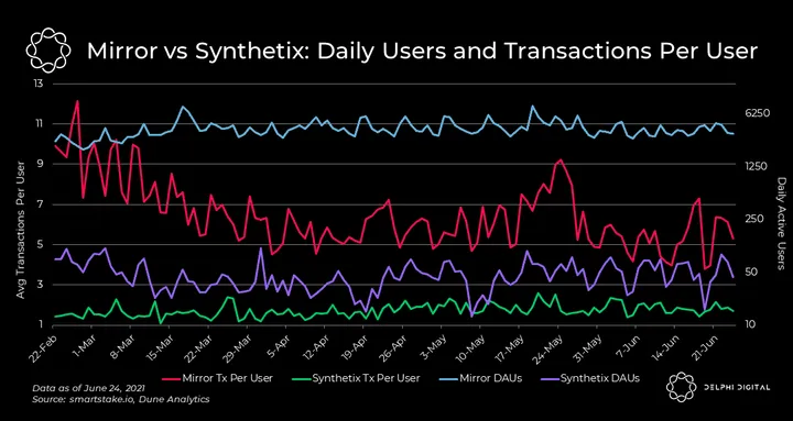 - Mirror protocol eclipses Synthetix as the top DeFi synthetic assets platform with more than 3,000 daily active users (DAUs) compared to 60-70 DAUs on Synthetix.