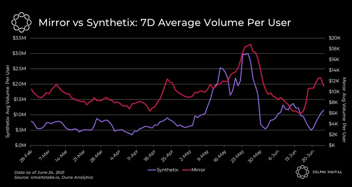 Mirror Eclipses Synthetix In Terms of Trades Per User