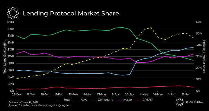 - In the last 2 months, we’ve seen Aave taking significant market share at the expense of Compound.