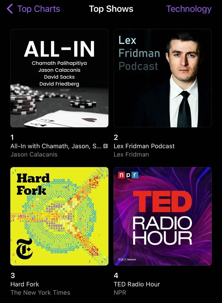 For the uninitiated, the All In podcast is hosted by four Silicon Valley investors, entrepreneurs, and IRL “besties” — David Sacks, Jason Calacanis, Chamath Palihapitiya, and David Friedberg. The four began meeting once a week at the height of Covid to stave off boredom and discuss current events. They enjoyed the conversations so much that they started to post them on YouTube. All In has since become the #1 technology podcast in the world and single-handedly raised the profiles of all four already accomplished co-hosts.