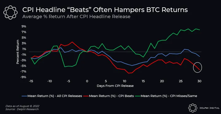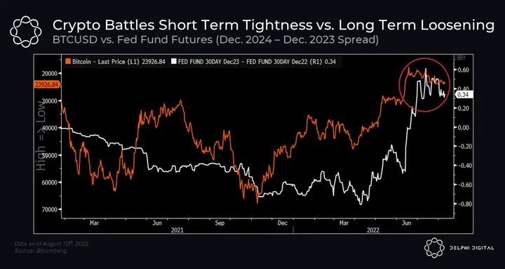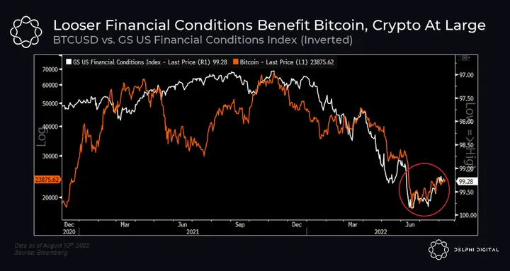 Many were hoping the July CPI print would give us a better clue as to whether the Fed will be able to loosen its tight grip on financial conditions sooner rather than later. For context, US financial condition “tightness” peaked on the same day that BTC and crypto bottomed in June.