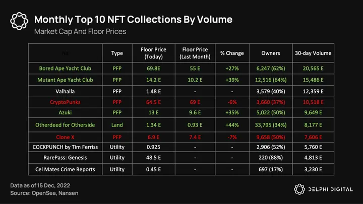 Monthly trading volumes of the top NFT collections remain relatively muted: