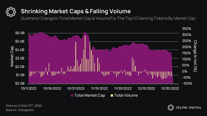 - Although not a perfect representation of the web3 gaming market, the chart above illustrates the changes in total volume and total market cap of the top 10 gaming projects combined.