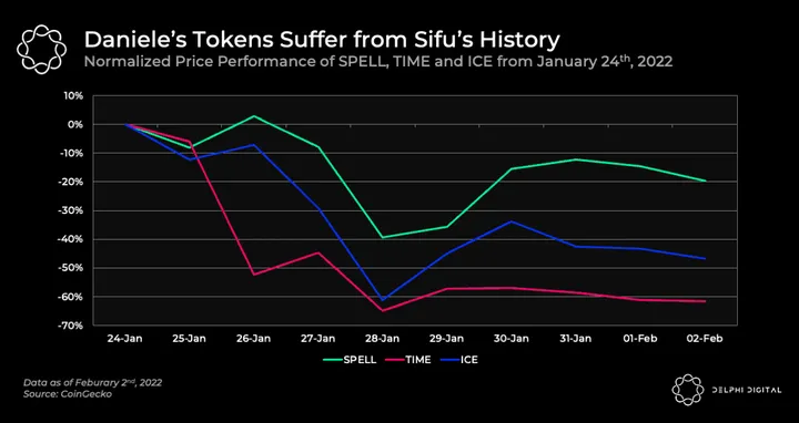 - Since the incident, Daniele-related tokens have suffered alongside TIME.