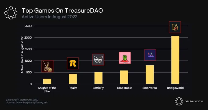 - The most played game on TreasureDAO is Bridgeworld. This flagship game in the TreasureDAO ecosystem has received the most attention from the core team.