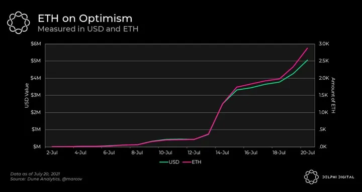 - Not surprisingly, the amount of ETH bridged to Optimism is making all-time highs on the back of Uniswap v3’s launch on Optimism.