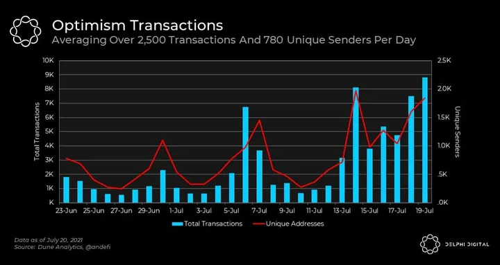- With leading protocols such as Uniswap v3 and Synthetix launching on Optimism, this could serve as a very powerful headstart against competing Layer 2 projects. The battle for Layer 2 dominance is just getting started, definitely worth paying close attention to this space.