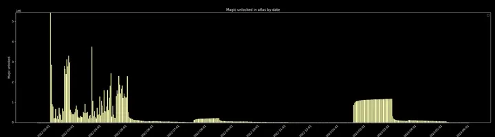 - Firstly, a significant amount of $MAGIC will be unlocked from the Atlas Mine in the coming days: approximately 1M $MAGIC a day & peaking at 2.4M on 9 May. This could add to sell pressure on the token until then. After that, the rate of unlocks slows down significantly. (Shoutout to @samuelbjorn for the chart)