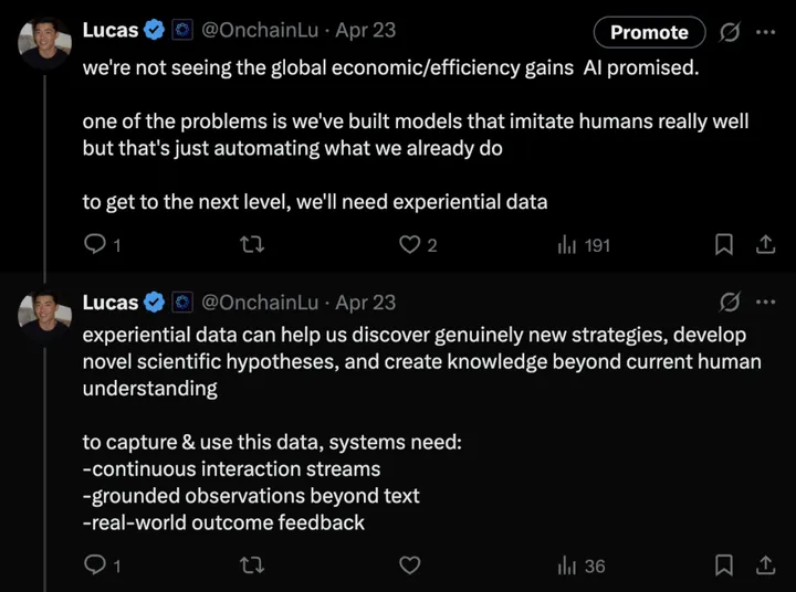 Current AI hits a ceiling because they’re trained on human knowledge – text, images, video demonstrations of tasks, etc. – which works for mimicking humans, but leaves the real world untapped. You can’t reach true AGI by only learning from static data. Like humans, AI needs to learn through experience.