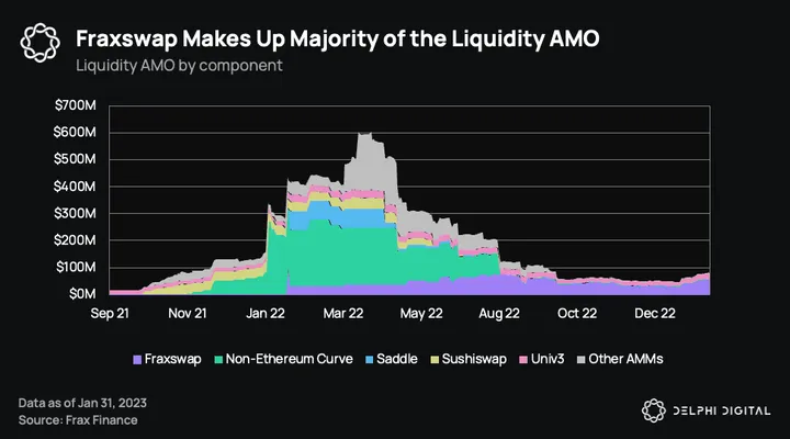 Fraxlend and Fraxswap somewhat reduce this reliance on third-party protocols to operate Frax’s AMOs.