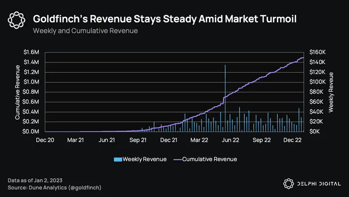 - Since inception, the protocol has generated nearly $1.5M of revenue. Revenue has been steady through H2 2022, which is vastly different from most DeFi protocols.
