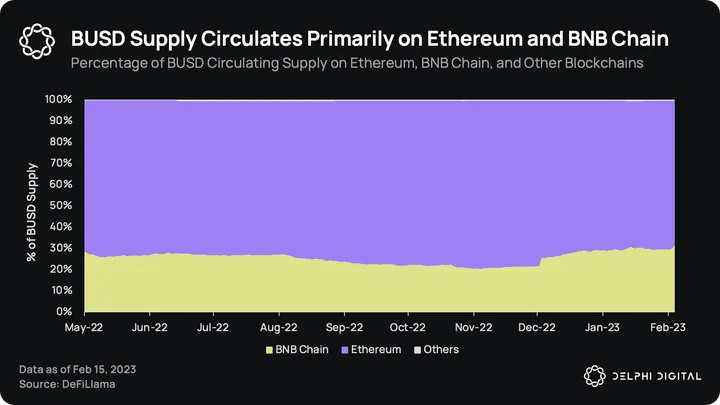BUSD circulates primarily on Ethereum, where it is natively issued by Paxos, and the BNB Chain, where the token is bridged by Binance.