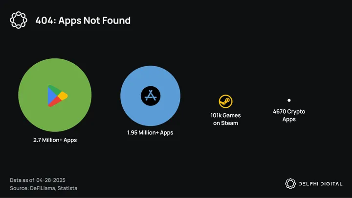 While the industry often blames poor UX, speculation-driven culture, and regulatory uncertainty; significant progress has been made in these areas. What’s seldom addressed is the fundamental crisis at the heart of crypto: the alarmingly small number of live applications and their sluggish development pace.