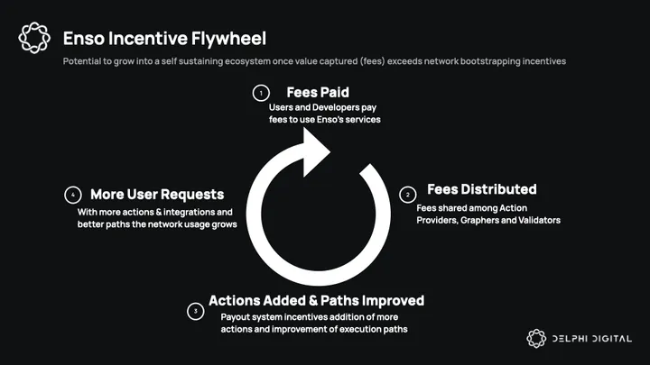 Enso’s core monetization model is straightforward: it earns fees for each user request processed through its network services. As transaction volumes grow, this fee-based revenue stream scales naturally. Looking ahead, Enso could introduce priority fees, allowing users to pay a premium for faster access to Graphers and their solutions, particularly for time-sensitive transactions.