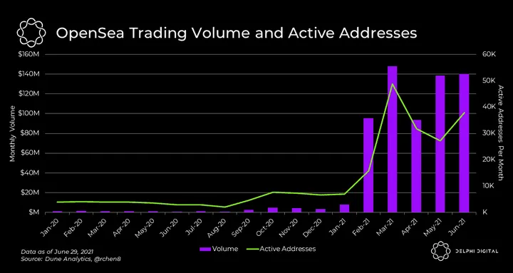 - While people called for the death of NFTs, OpenSea has been sustaining volume at elevated levels ever since the NFT craze set in earlier this year. The platforms routinely facilitate around $140 million of volume per month, which is no small feat given NFTs are extremely illiquid.