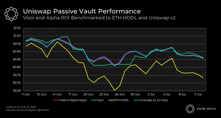 - As Charm, Visor, and other Uniswap LP products fine-tune their strategies to optimize for better performance, the market for passive Uniswap LP-ing will grow multifold.