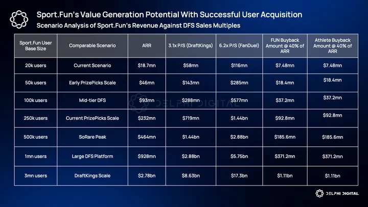 As a sports centric onchain app, Sport.Fun has the potential to appeal to more than just a crypto native audience. If the platform successfully breaks out of the crypto chasm, it will have direct implications for revenue generation and token value accrual.