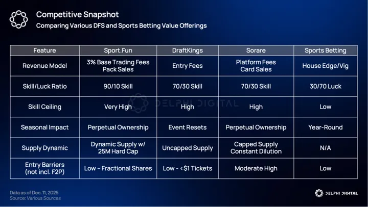 The first IP launched under the Sport.Fun banner was Football.Fun, which is the European football (soccer) flavor of the game. Football.Fun quietly launched its MVP in Feb. 2025 but gained broader appeal amongst crypto-natives when the Pro version of the game went live in Aug. 2025. The brand launched its second game focused on the NFL (American football) in early Nov. 2025, and an NBA/basketball integration is expected in Q1 2026 with more sports to follow.