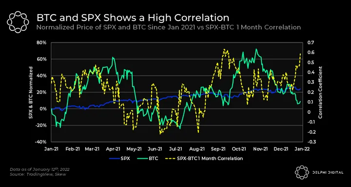 - BTC has a historically low correlation with the equity markets. However, since 2020, we have seen more traditional players enter crypto markets. As institutional adoption in BTC increases, we will likely see an even higher correlation in the future.