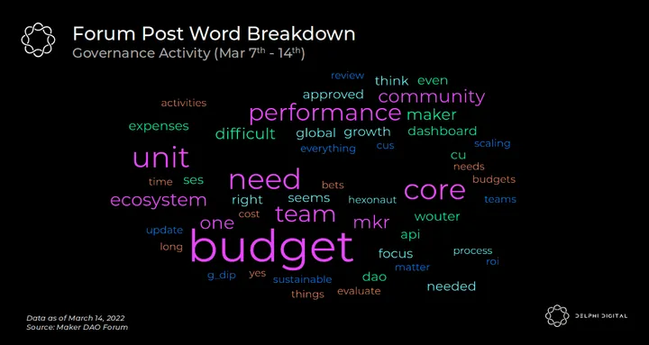 - Pro Arguments: Doo_Nam has seemingly struck a chord with the Maker DAO community. The majority of responses in the forum are supportive and echo their sentiments that Maker DAO’s current organizational and budgeting structure is struggling at scale. Even a core unit facilitator agreed, pointing out that expense reports are fragmented, not standardized, and there is a lack of performance evaluations for core units. However, the SES core unit is building out a performance API and dashboard for Maker DAO to assess better how core units are operating. Another community member reiterated that there are too many budgets to follow and prefers a quarterly budget. Finally, yet another community member recommends a consolidated global budget approved by MKR holders.