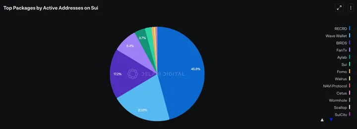 Move packages (smart contracts on Sui) are immutable objects. We can look at the most used packages based on data from Artemis.
