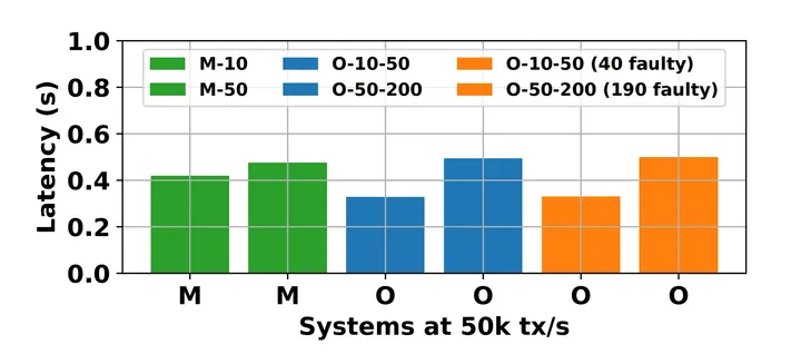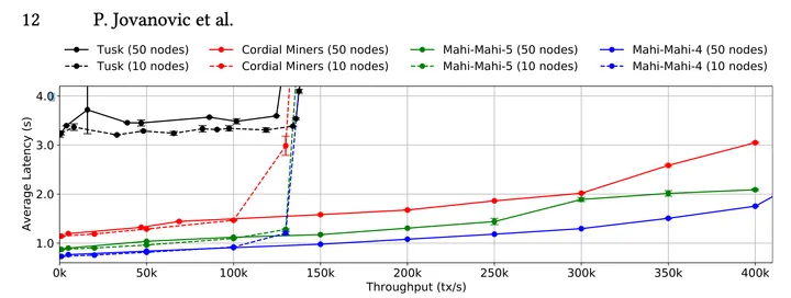 Mysticeti also accounts for faulty validators. Its commit rule is designed to detect and exclude crashed validators from consensus, allowing the network to maintain high performance even when some validators are unresponsive.