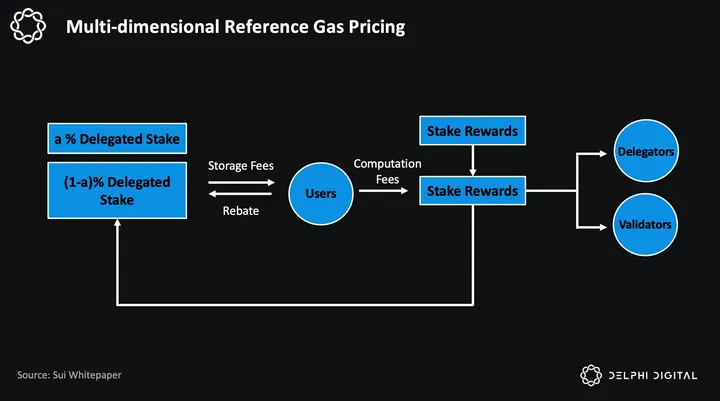 Sui uses a multi-dimensional reference gas price mechanism. It separates fees into two main components: computation fees and storage fees.