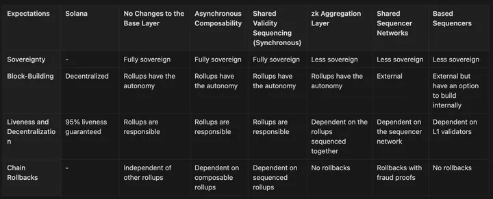 | Expectations | Solana | OP Stack Chains in the current stage |