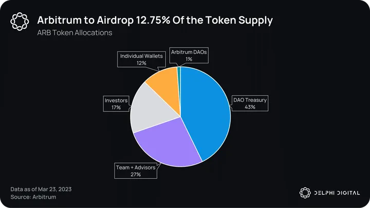 March 23 ā Arbitrum Airdrop: 12.75% of the total supply will be distributed to Arbitrum ecosystem users and DAOs.