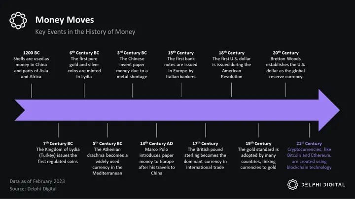 To understand the economy, we must first understand that which flows through it: money. Over the long arc of history, monies have come and gone, often dying as Hemingway describes bankruptcy: “gradually, then suddenly.” From seashells to metal coins to gold bars to pieces of paper, “money” has been a moving target.