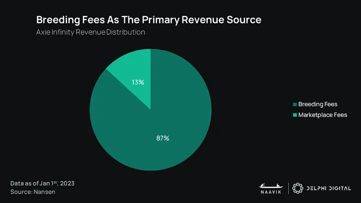 The game’s revenue is mostly made up from NFT breeding fees, a mechanic that ultimately leads to further asset inflation (so pricing deflation). Furthermore, some balancing efforts have adversely impacted the capital-constrained players, who are more sensitive to increased breeding fees and changes made to what is required of a highly competitive team of Axies.