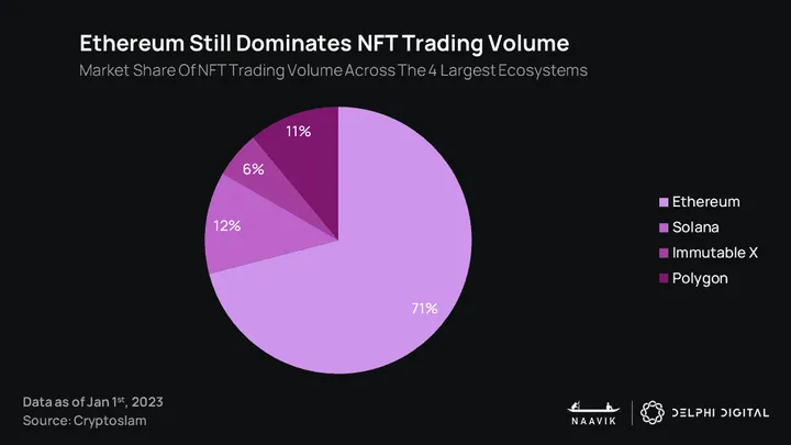During the peak of the gaming mania, competing ecosystems felt like the market was escaping them, and thus we saw ultra-aggressive and competitive grant programs. Heading into 2023, it’s clear that the bigger and more important fight is outwards, not inwards. As Ryan Wyatt put it in his end of year reflections: “The idea that any of these companies are competing is foolish. The space is too small, and everyone’s wins for the space should be shared and embraced by all.” In particular, Polygon and Immutable are the undisputed champions of Ethereum gaming, and we are very excited to see what forces might be unleashed through improved collaboration on the road ahead.