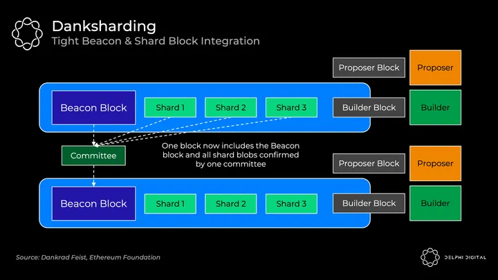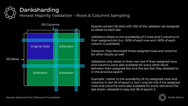 Each of the 64 shard blocks had separate proposers and committees rotating through from the validator set. They individually verify that their shard’s data was made available. This wouldn’t be DAS initially – it relies on the honest majority of each shard’s validator set to fully download the data.