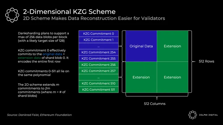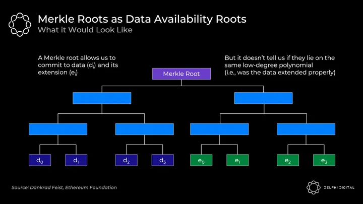 - Ethereum and Polygon Avail are going a new route – KZG commitments (a.k.a. Kate commitments). This removes the honest minority and synchrony assumptions for safety in regards to fraud proofs (though they’re still there for reconstruction, as we’ll cover shortly).