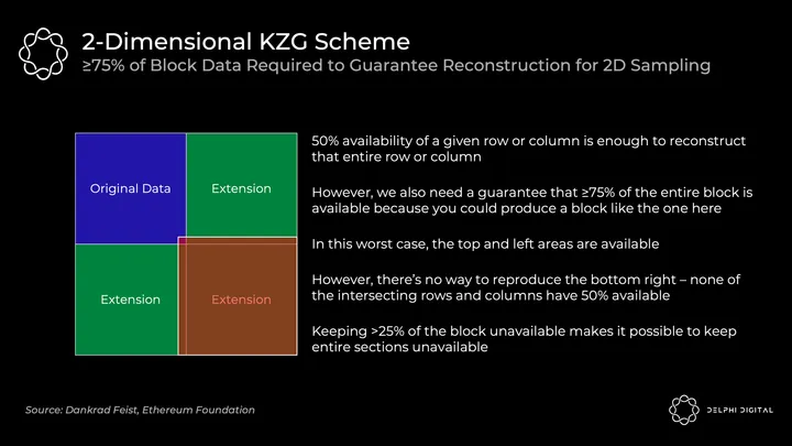 However, consider that Ethereum will still reintroduce these assumptions for block reconstruction, so you’re not actually removing them. DA layers always need to plan for the scenario where the block was made available initially, but then nodes need to communicate with each other to piece it back together. This reconstruction requires two assumptions: