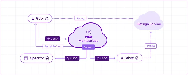 - TRIP marketplace – DAO-governed smart contracts that offer coordination and consensus services to the network. Help the network remain neutral and fair without relying on centralized authority.
